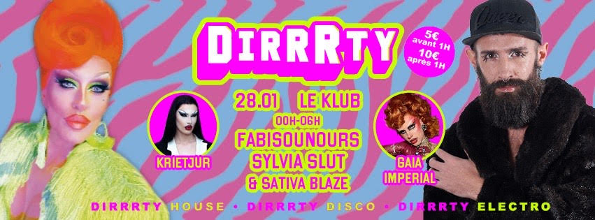 Ce samedi 28 janvier se tient la seconde édition de la soirée DIRRRTY. Esprit déjanté et musique de choix, découverte de la DRAG/DJ Sylvia Slut aux commandes de ce rendez-vous nocturne so punk.