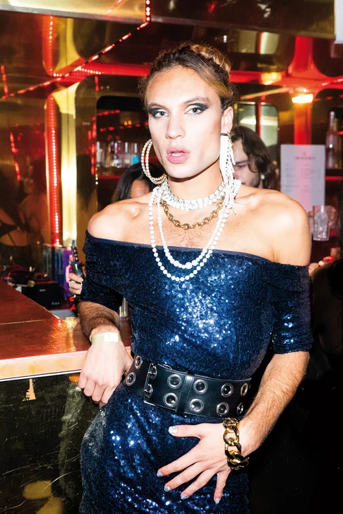 La Lolita et Isaak, ça sonne comme une évidence. « C’est une des premières soirées où j’allais quand je suis arrivé à Paris. Cette soirée était vraiment comme une porte d’entrée vers toute la liberté et le plaisir que j’ai à faire la fête, à être avec des gens et à danser », explique-t-il. De cette apothéose de la nuit, de cette ambiance qu’il qualifie de « complètement barge, dans un lieu tout aussi dingue », aujourd’hui il en est le gardien. A la porte tous les vendredi soir, il veille sur ce trésor. Du dancefloor au physio, il n’y a qu’un escalier qui sépare ces deux mondes. Passer par le doorman, c’est le sésame vers un ailleurs. Alors pour garder l’esprit et la qualité de la Lolita, il faut un savant et doux mélange de personnalités pour que le cocktail prenne. « A mon avis quelqu’un qui va à la Lolita, c’est une personne qui est plutôt bien sapée, qui n’a pas peur du bonheur, qui joue d’un petit coup d’eyeliner, parce que c’est vendredi soir et qu’on a passé une semaine où on n’avait pas la liberté de pouvoir le faire, mais quand même on s’en branle, parce que là c’est le moment. On va pouvoir trouver le mec qu’on avait croisé la semaine dernière, celui avec qui on a couché, ou alors on va rencontrer des copines qui sont venues avec un autre copain et se jeter dans ce bain de foule complètement barge, et surtout d’avoir envie de revenir », voilà sa vision de Lolita crew.