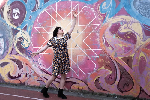 Je suis une artiste qui monte sur scène depuis plus de 20 ans, mais aussi une femme dite trans qui a fait son coming out il y a deux ans. Le « pour le moment » dans mon nom, c'est un clin d'œil à ma transition - comme quoi même mon nom de scène est en transition ! J'ai une longue histoire avec l'improvisation théâtrale que j'ai pratiquée pendant longtemps, jusqu'à créer des outils pour aider à la pratiquer. Avant mon coming out, j'avais quitté le monde du spectacle depuis quelques années et j'étais cadre dans une boîte tech, mais le début de ma transition a tout chamboulé : licenciement, rupture, rejet familial... La totale ! Maintenant, je suis revenue à mes premiers amours - la scène et l'écriture humoristique.