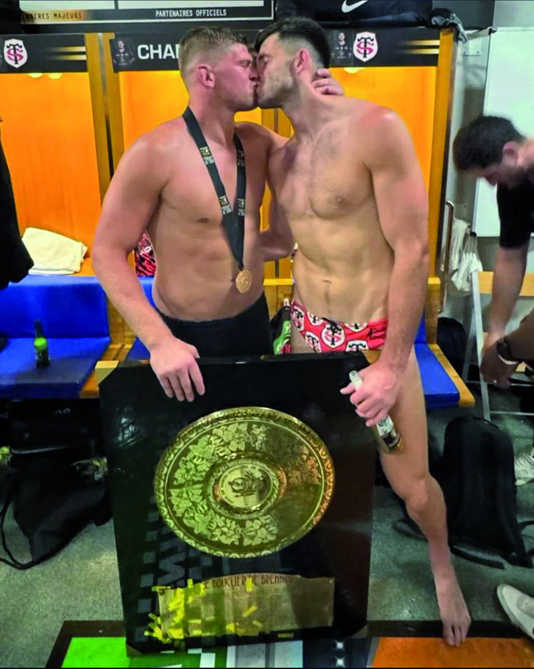 Après la victoire du Stade Toulousain contre Bordeaux-Bègles, deux stars du rugby, Blair Kinghorn et Jack Willis, ont échangé un baiser sur la bouche dans les vestiaires, provoquant une vague d’émotion sur les réseaux sociaux. Symbole de camaraderie ou plus profond, ce geste brise les codes virilistes du sport, encore marqué par l’homophobie. En milieu encore fermé, cette image, largement relayée, contribue à normaliser les marques d’affection entre hommes.