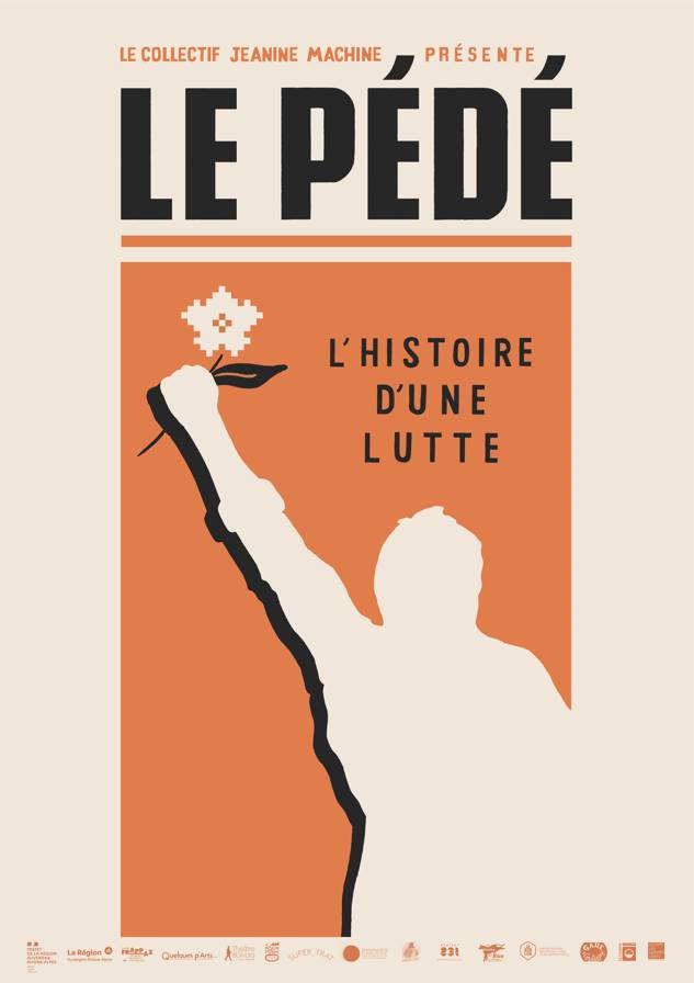 Un homme, blanc, cisgenre, troubadour en pleine rue raconte les luttes qui ont fait l’histoire de la culture LGBTQ+ du 20ème siècle. Ce spectacle de rue novateur redonne vie aux pionnier.es de la lutte grâce aux élucubrations de Brice Lagenèbre, Tantôt Soeur de la Perpétuelle Indulgence, tantôt dancing queen ou encore membre du FHAR, il traverse le temps à travers une marche, qui s’apparente à celle des fiertés. Reprenant l’insulte "commune" dans le titre de cette oeuvre (« le Pédé »), il se l’approprie pour revendiquer haut et fort en plein espace public
