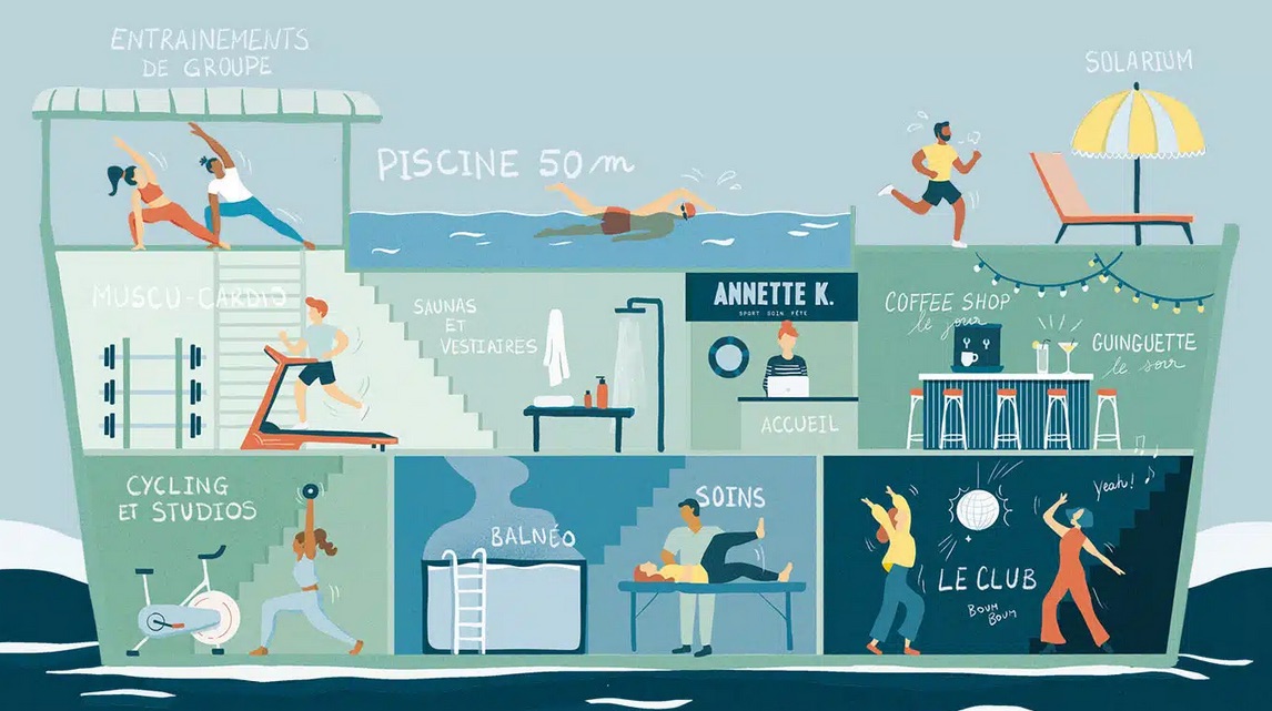 La barge piscine tant attendue de la team Rosa Bonheur a enfin ouvert ses portes au Port Javel Bas dans le 15e arrondissement. AnnetteK est un bateau de 110m de long amarré au bout du Parc André Citroën. Ces 4000m2 sont dédiés au bien-être, à la culture, à la fête avec une sublime piscine de 50m à ciel ouvert. Au menu, un club pour les accros de sport, avec un plateau cardio et musculation, des studios de cycling et de yoga et une salle de cours collectifs en rooftop. Pour se faire du bien, un bassin de balnéothérapie, un centre de kinésithérapie et un spa vous attendent. Bien entendu, vous y trouverez l’indispensable coffee shop pour vous régaler de bons produits du petit déj au café en passant par le dej à tendance veggie. Et si vous êtes plutôt fiesta, le soir, l’espace guinguette est une invitation à siroter un verre, picorer des tapas et vous déhancher sur des DJs sets. Un cadre élégant où tout est pensé pour vous mettre bien ! www.annettek.fr