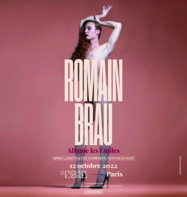 Après un succès non démérité pour son premier one woman show, Romain Brau et sa chevelure de feu remet le couvert pour une date unique le 12 octobre au Etoiles à Paris. Accompagné au piano par Grand Soir, il va vous faire voyager dans son monde à la croisée du cabaret et du tour de chants, de la poésie et du burlesque. Matinée d’une folie douce et de poésie, parsemé d’humour et de délicatesse, mais aussi de puissantes revendications, Romain passe à travers ses compositions originales et des reprises, tout en élégance et glamour des messages d’une force inouïe. A voir absolument.