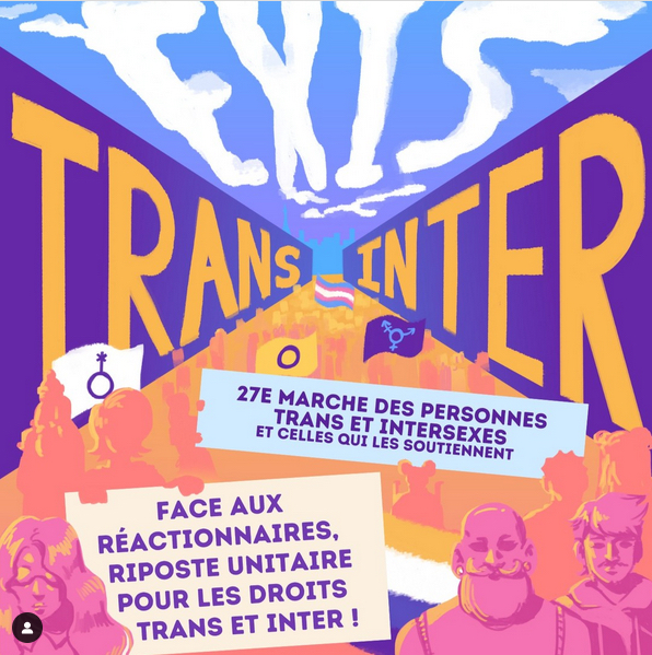 La 27ème Marche des personnes trans et intersexes  (et ceux.celles qui les soutiennent) aura lieu samedi 12 octobre 2024. Rendez-vous place de la République à 14h. Le mot d'ordre sera "face aux réactionnaires, riposte unitaire pour les droits trans et inter".