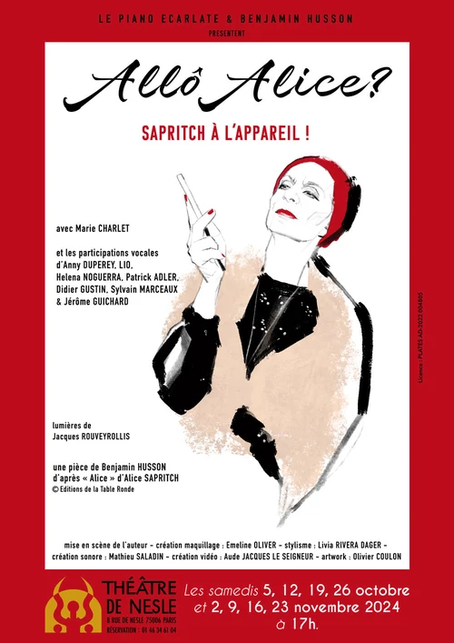 Les moins de 30 ans ne peuvent pas connaître la diva ultime du cinéma et de la télévision française que fut LA Sapritch des années 70 à 90. De Marie Besnard aux nanards en passant par des pubs de légende (Jex Four) ou encore un strip tease mémorable dans la Folie des grandeurs, cette actrice touche à tout sortira de la naphtaline sur scène dans Allô Alice ?