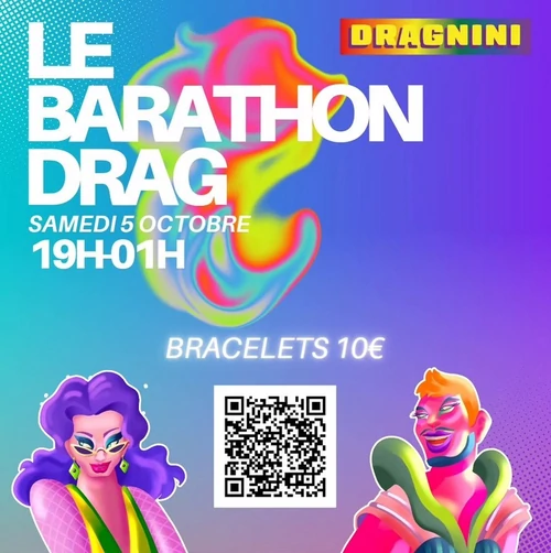 Samedi 5 Octobre de 19h à 1h, 13 drag Queens vont animer 5 bars avec leur bonne humeur : le Blue Bambino, le Coxx, l'Hypno bar, le Kay West et la Tireuse. 13 Artistes (Caramella Ploucasse, Cordy Nerdy, Darioushka, Enzo Mademoiselle, Eros Moustaki, Eva Moon, Kara Mâle, Kate Amary, Mademoiselle Bunny, Mme Bouche-à-Rat, Ornella Cruz, Poppy 2 Popstar, Suspiria.
