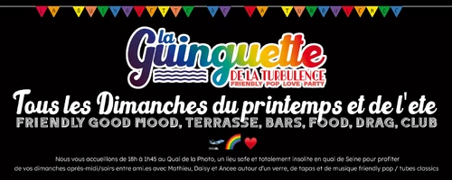 La Turbulence a ouvert depuis début mai au Quai de La Photo, un rendez-vous dominical des plus insolites ! Les pieds dans l’eau ou presque de 18h à 1h45, cette péniche amarrée au 9 Port de la gare dans le 13e arrondissement de Paris se métamorphose en une guinguette arc-en-ciel. Dans cet espace safe, on vient profiter d’un moment suspendu pour bien finir le week-end. On vient se détendre, prendre un verre en amoureux.euses, entre ami.es, en famille, déguster quelques tapas, discuter, rigoler, faire des rencontres, s’amuser, danser sur une terrasse géante. Pour vous embarquer dans ce voyage hebdomadaire, vous aurez pour vous servir un crew des plus accueillants avec Mathieu, Daisy et Ancee. Drag Show et ambiance clubbing s'emparent du lieu à partir de 22h… Une adresse qui vaut le détour et qui vous offre une vue magique sur Paris.