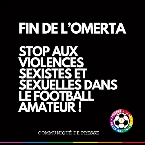 Le FC Paris Arc-en-ciel, premier club de football LGBT français soutient sans faille « celles et ceux qui parlent et brisent l'omerta face aux violences et dénoncer l'absence ou la lenteur des réactions des dirigeants pour les protéger et pour mettre fin à un "continuum long [selon la Ligue de Paris Ile-de-France - FFF] de violences sexistes et sexuelles ". C’est avec ces mots publié dans un communiqué officiel diffusé le 3 janvier que le club de sport s’insurge face à l’impunité des agresseurs qui perdure dans le monde sportif. Bien plus qu’un coup de gueule à la volée, cette réaction cosignée avec plus de 30 associations et personnalités à pour objectif de faire bouger les lignes une fois pour toute. A la veille d’un match contre le club la Salésienne, le FC Paris Arc-en-ciel explique que ces membres ne peuvent rester silencieuses et silencieux face aux révélations de violences sexistes sexuelles au sein de la section football de ce club du XVIlème arrondissement qui compte près de 4 000 adhérentes et adhérents.