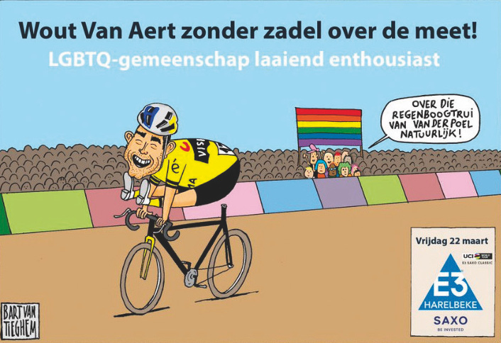 Une communication pour une épreuve de cyclisme en Flandre a fait pschitt par son degré d’inélégance à l’attention des LGBT. On y voit Wout Van Aert passer la ligne d’arrivée sur un vélo sans selle et en arrière plan on voit dans le public un drapeau LGBT. Bien que le dessin fasse référence à la victoire du coureur belge de 29 ans le week-end précédent au cyclo-cross dans lequel il a concouru en Espagne, et où il avait effectivement perdu sa selle lors du dernier tour. Au-delà de la caricature, c’est le commentaire qui l’accompagne « la communauté LGBTQ est très enthousiaste » qui a fait sortir de ces gonds la communauté belge. Les plaintes n’ont pas tardé à s’accumuler et les organisateurs de la compétition ont été contraints de la supprimer au regard des retours négatifs et de s’excuser.